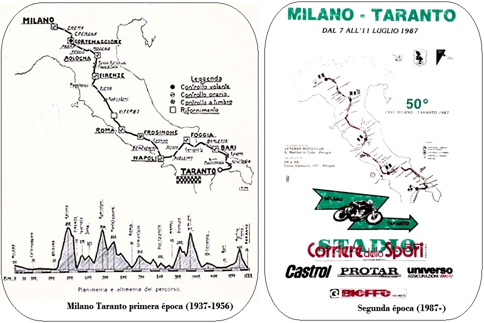 La primera carrera celebrada el 2 de mayo de 1937m fue ganada por el boloñés Sandri, sobre una MOTO GUZZI 500 bicilindrica, a una media de 121 m/h, empleando un tiempo de 12h 20´ 28"