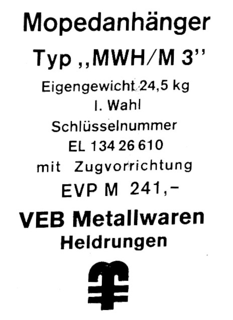Desde 1972 - como "VEB Metallkombinat Heldrungen" - fue la responsable de la fabricación de remolques para bicicletas y ciclomotores.