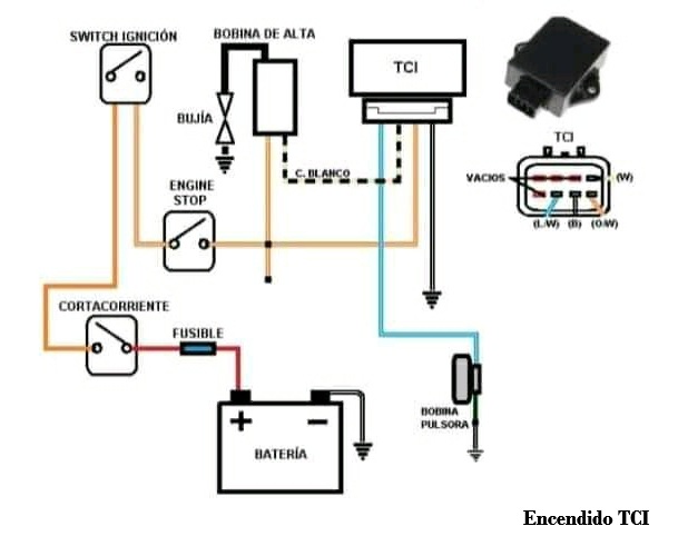 El Encendido TCI (Transistor Controlled Ignition) es un sistema electrónico de encendido para motores, común en motos y otros vehículos, que usa un transistor como interruptor para controlar el flujo de corriente a la bobina de encendido, alimentándose directamente de la batería, a diferencia del CDI que almacenera energía en un condensador, ofreciendo una chispa más potente y precisa para una mejor combustión,