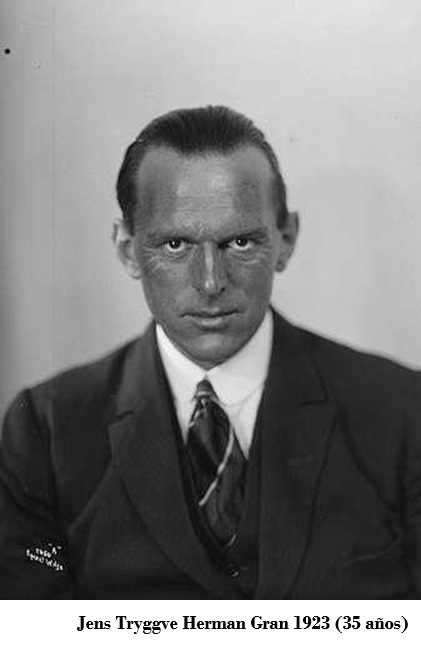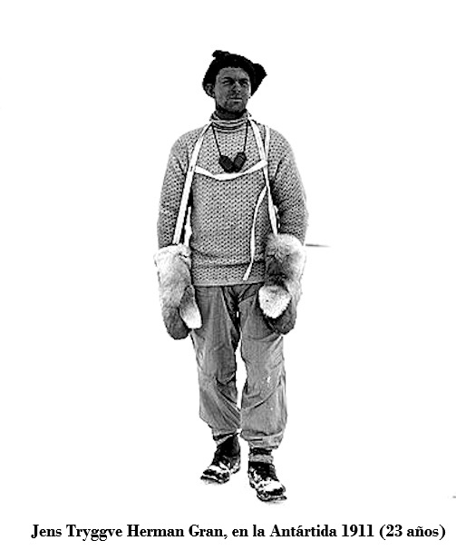 Jens Tryggve Herman Gran (20 de enero de 1888, Bergen, Hordaland - † 1980, Grimstad, Agder, N), gran especialista en ski que intervino en el segundo Raid Polo Sur de Robert Scott (1910), además de ser el primer héroe volador de Noruega - especialista en vuelos sobre el Mar del Norte - alcanzando el grado de comandante de la RAF (1918) durante la I Guerra Mundial, entre otras cosas...