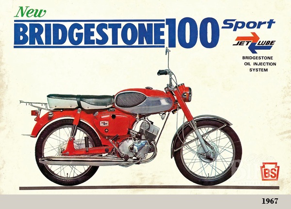 (¹) Bridgestone producía motocicletas excelentes y, cuando cesó su fabricación, surgió uno de los mayores mitos del motociclismo: las motocicletas Bridgestone eran tan buenas que los otros cuatro fabricantes japoneses las obligaron a cerrar, argumentando que no usarían neumáticos Bridgestone si continuaba la fabricación. Esta teoría conspirativa es buena, pero está lejos de ser cierta, ya que se combinaron varios factores que convencieron a la gerencia de Bridgestone de cesar la producción de motocicletas. El mito de que los cuatro grandes no usaban neumáticos Bridgestone omite el hecho de que, en ese momento, Yokohama suministraba la mayoría de los neumáticos OEM, y SUZUKI utilizaba su propio proveedor, "Inoue", para muchos modelos. De hecho, Bridgestone había decidido producir solo una gama limitada de neumáticos para motocicletas, principalmente para sus propias motocicletas. En 1963, Bridgestone adquirió Fujikura Rubber, proveedor de neumáticos