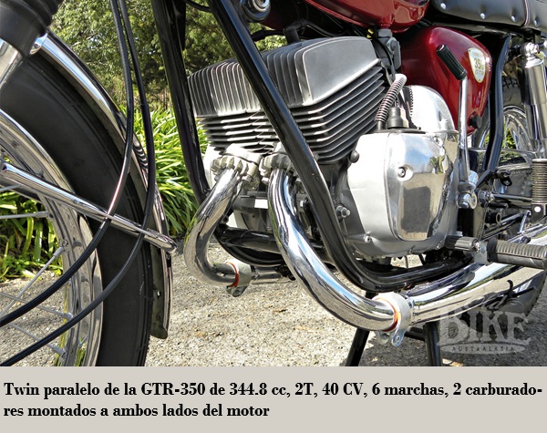 • GTR-350: twin paralelo de 344.85 cc, 40 CV / 7 500 rpm, compresión 9.3:1, 6 marchas