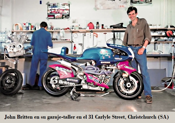 El ingeniero John Britten, (1 de gosto de 1950, Christchurch - † Sepelio 5 de septiembre de 1995, Christchurch, South Island New Zealand) creó la "Britten Motorcycle Co., Ltd.", con sede en la población de Christchurch, Isla del Sur de Nueva Zelanda. Inicialmente operó en su garaje-taller de su domicilio y después fue trasladado a su sede actual en 31 Carlyle Street.