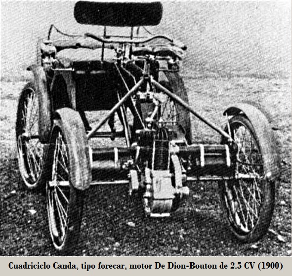 También fabricó vehículos de 4 ruedas que en aquella época denominaron cuadriciclos, con motor DE DION-BOUTON monocilindrico con distribución ioe de 2.5 CV, con un gran volante motor externo, montado sobre el eje trasero con transmisión por eje
