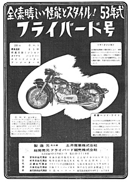 La compañía "Doi Sangyo Co., Ltd.", con sede en el barrio Nakamura-ku, de la ciudad de Nagoya, prefectura de Aichi, a partir de 1951 fabricó diversos modelos de motocicletas bajo el nombre de marca FLY BIRD o FLYBIRD (フライ・バード), generalmente con motores de 4T de 150 hasta 250 cc, y también una monocilíndrica de 125 cc pero de 2T