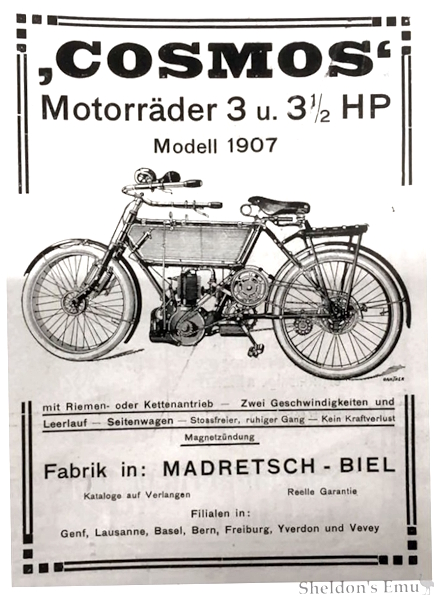 La firma "Motorradfabrik Medretsch-Biel AG", con sede en la población de Biel, cantón de Berna, fabricante de bicicletas, a partir de 1903 se dedicó a ensamblar motocicletas equipadas con motores FAFNIR de 452.39 cc (4.5 CV) y ZÉDÈL de 3.0 CV, ambos de 4T con distribución ioe y algunas sv. en bastidores de sus bicicletas previamente reforzados.