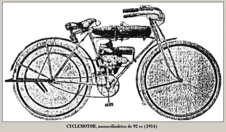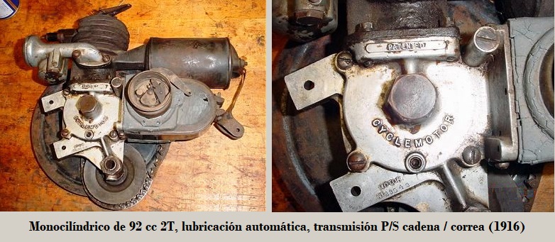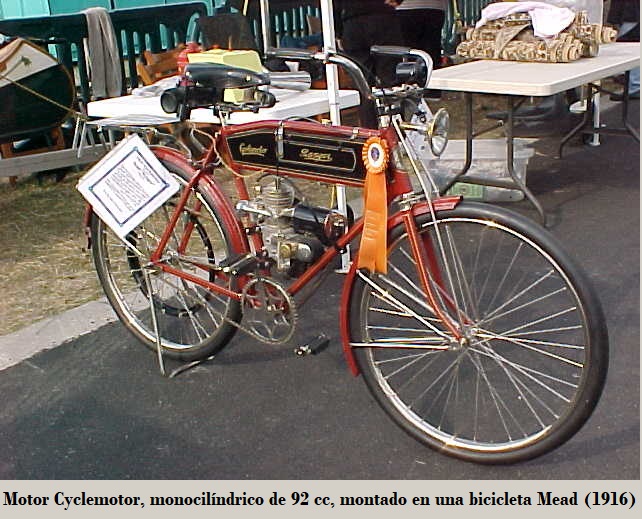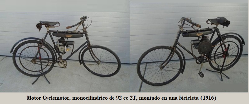 La "Cyclemotor Corp.", con sede en Rochester, Nueva York, en 1916 inició la fabricación de un motor auxiliar monocilíndrico de 92 cc, con lubricación automática, volante motor externo, para montar en el interior del cuadro de bicicletas, transmisión P/S cadena / correa, frenos D/T de cuchara / de llanta con el tanque de combustible "colgado" de tubo superior del cuadro.