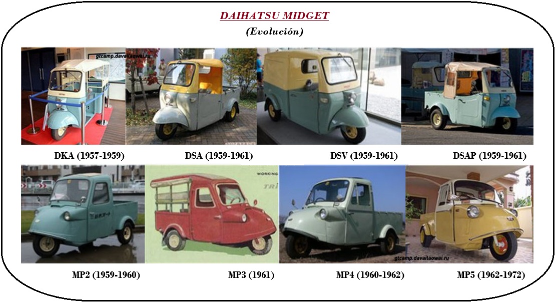 automóviles, pequeñas furgonetas y camiones), mientras de la fabricación de los vehículos de 3 ruedas se encargó la “Daihatsu Motor Co. Ltd.”, la cual fue la encargada durante la década de 1950 y de 1960 a la producción de una amplia gama de vehículos comerciales de 3 ruedas, que tuvieron gran éxito, tanto en Japón como en otros mercados asiáticos.