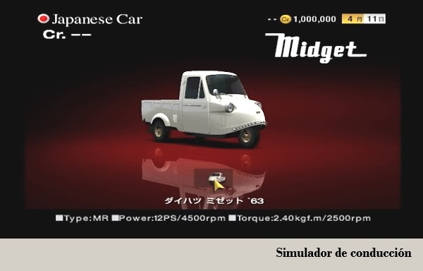 • Serie Midget: motor monocilíndrico de 2T, refrigerado por aire, equipado con manillar o volante de dirección, cabina abierta (sin puertas, techo de lona, mono o biplaza) o bien cabina cerrada (con puertas, techo metálico y dos asientos ) con las siguientes versiones:- MP1: motor {ZA}, manillar de dirección, sin puertas techo de lona plegable, monoplaza.