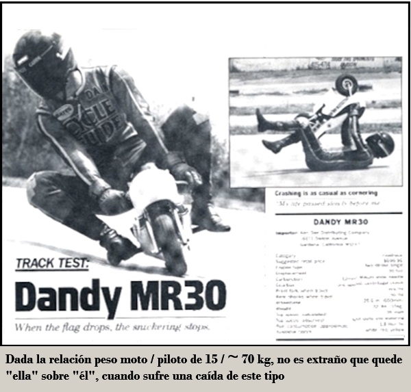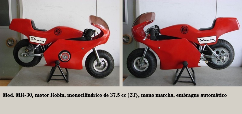 • MR.-30: motor Robin EY20 de 30.5 c/c, 1.98 CV, carburador Mikuni, velocidad 35 mph (56.4 km/h) o (65 km/h con kit de preparación, tanque en situación habitual (por encima del motor), neumáticos mas estrechos, solo freno trasero de disco, bastidor con menor número de puntos de soldadura, batalla 650 mm y un peso de tan solo 15.5 kg.