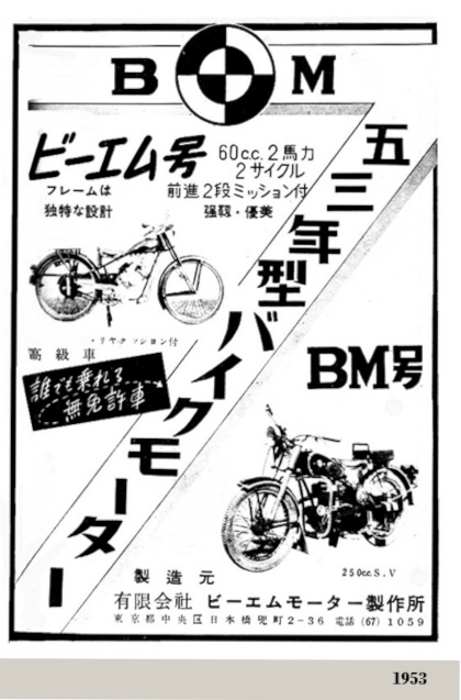 La "BM Motor Manufacturing Co., Ltd.", con sede enel 8 Chuo-ku, distrito de la ciudad de Tokyo, fue otra de las múltiples pequeña empresas ensambladoras de motocicletas, surgidas en el Japón de posguerra