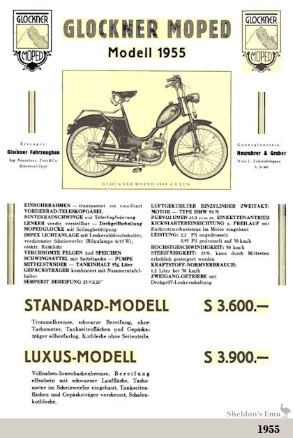 La firma "Glockner Motorräder", con sede en el pequeñó pueblo Tirolés de Biberwier, se dedicó a partir de 1953 a fabricar ciclomotores ensamblados con motores HMW (Hellein) monocilíndricos de 50 cc 2T y probablemente también con los PUCH.