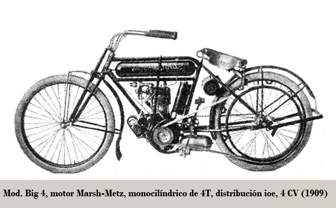 A partir de 1909, al igual que hicieron las firmas ARROW (Chicago), NATIONAL (USA) y PEERLES (Boston), vendieron motocicletas de la firma MARSH-METZ, MM (Brockton) equipadas con motores monocilíndricos de 4.0 CV, 4T y distribución ioe, cambio marchas Gradua gear, encendido por magneto, carburador Schebler, bajo su propio nombre de marca.