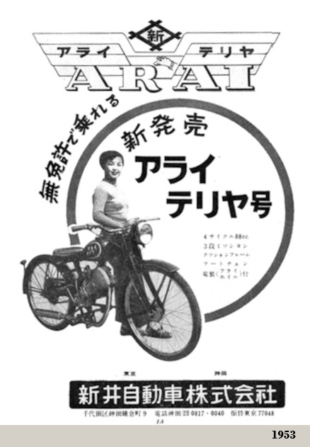 La "Arai Motor Co., Ltd.", con sede en Tokyo, fue otra de las pequeñas empresas surgidas en Japón en la década de 1950. Se trataba de un ensamblador de motocicletas equipadas con motores MIZUHO ("Mizuho Automobile Manufacturing Co.")