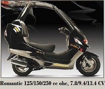- Romantic (YY125T-2A): de 125 cc, 7.8 CV / 8 500 rpm, neumáticos D/T 120 - 70-12" / 4.00 x -12", velocidad 80 km/h, tanque de 12 L y 145 kg.