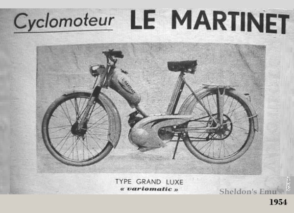 • Martinet Grand Luxe: monocilíndrico de 49.63 cc 2T, versiones de 1 y 2 marchas. 1954