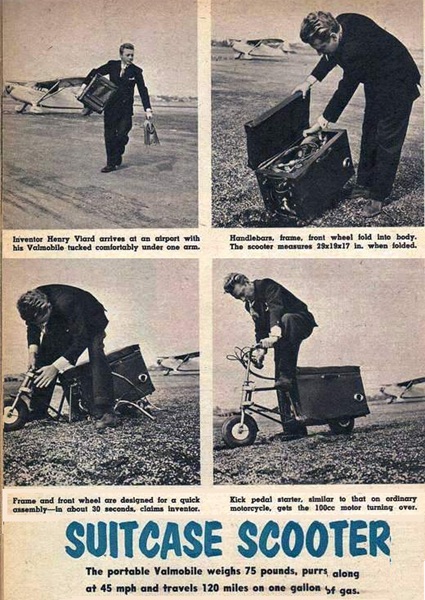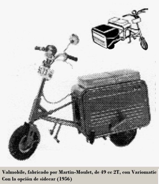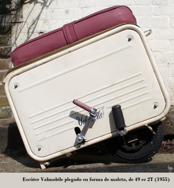 También fabricaron el escúter plegable VALMOBILE pero equipado con motor propio de 50 cc, con variador continuo de velocidad automático por discos de fricción, transmisión P/S correa / cadena y un peso de tan solo 34 kg