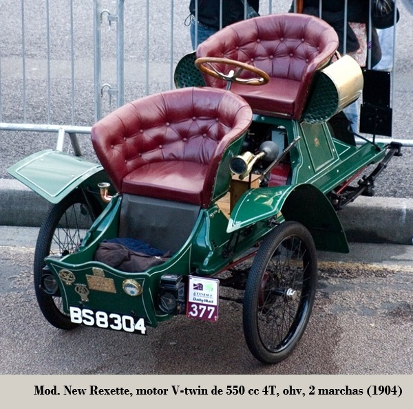 • New Rexette: forecar equipado con motor bicilíndrico de 550 cc, de 5.0 CV con caja de cambios de 2 velocidades. 1905