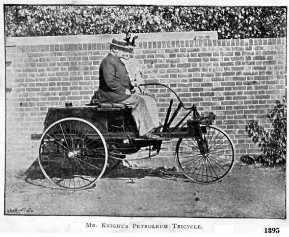 En 1895, fabricó un segundo modelo, biplaza, el "Knight´s Petroleum Tricycle", presentado Crystal Palace londinense en 1896, esta vez equipado con motor Otto de 707 cc 4T, refrigerado por agua, caja de cambios de 2 velocidades que utilizaba una "caña de timón" como sistema de dirección pudiendo circular de 3.5 hasta 9 mph; recorrió 150 millas hasta que fue detenido y multado por el Consejo del condado de Surrey, por circular a 9 mph en una vií pública urbana; ver Red Flag Act ....
