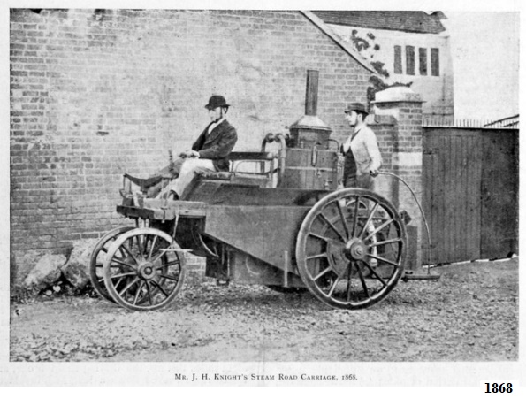John Henry Knight, con sede en la población de Farnham, condado de Surrey, fue el responsable de la fabricación de un vehículo tipo delta con motor a vapor - caldera "Field" - en 1868 al que se le considera el primer vehículo de uso privado ¹- en este caso de tres ruedas aunque en la parte delantera montaba ruedas gemelas, calificado en aquella época como locomovil.