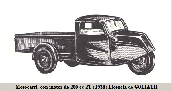 También fabricaron vehículos de tres ruedas - motocarros tipo delta bajo licencia de la germana GOLIATH, así como otros aprochando motocicletas militares a las que añadieron un eje posterior con dos ruedas.