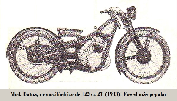 En 1933 el modelo "Batua" de 122 cc 2T, con bastidor de acero estampado, y al año siguiente lanzaron las monocilíndricas de 250 y 500 cc con versiones sv y ohv.