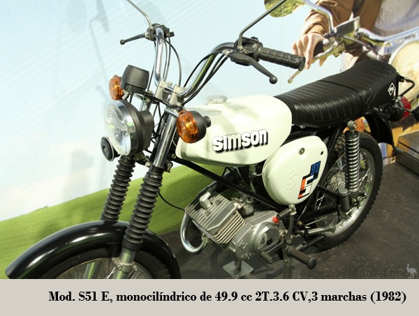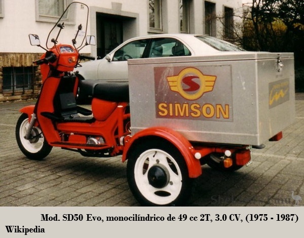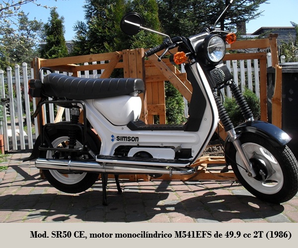 Posteriormente SIMSON abandonó los modelos de 4T, dedicándose solamente a cilindradas inferiores a los 100 cc, tanto para los ciclomotores (modelos SR1 / SR2 / KR50 (equipados con los motores Simson {Rh 50}) de 1.5 CV), escúteres como motocicletas ligeras.
