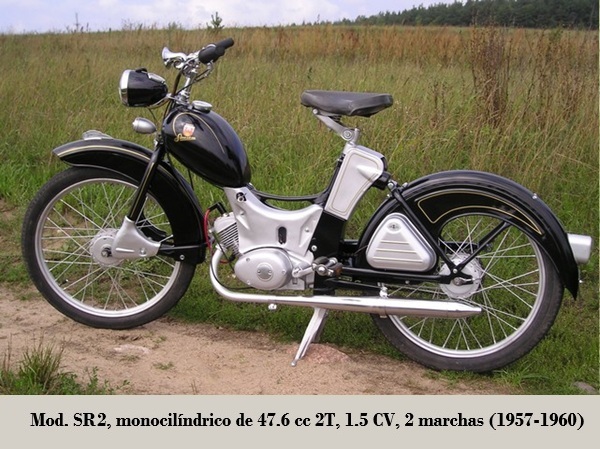 - SR2: motor RH50 de 47.6 cc, 2 marchas; fue una evolución de SR1, con motor más potente (1.8 CV) y bastidor más robusto, tanque 6.0 L 1957-1959