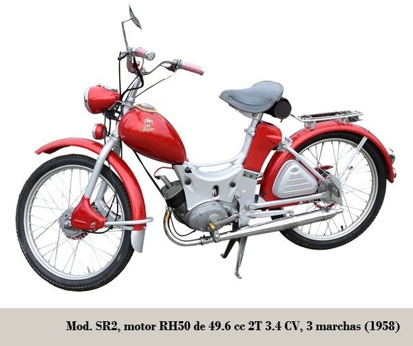 - SR1: motor RH50 de 47.6 cc 2 marchas y suspensión Neiman trasera; fue el primer ciclomotor fabricado. 1955-1957
