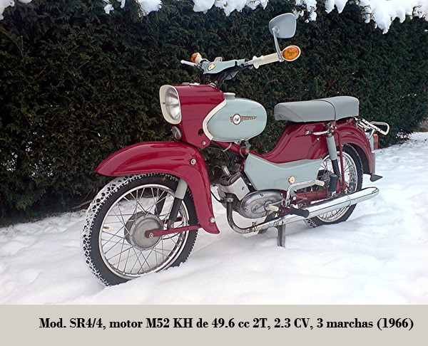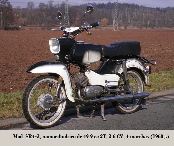 - SR4-2 Star ⁴: motor RH50 de 49.6 cc, 3.4 CV, 3 marchas, refrigerado por aire forzado, kick starter, compresión 9.5:1, alternador SLMZ 8306.10, bobina de encendido SLMZ, bujía M14.240, suspensión D/T horquilla Earles / basculante con amortiguadores, bastidor abierto monoviga, frenos de tambor D/T fue uno de los ciclomotores más populares en la DDR. 1964-1968