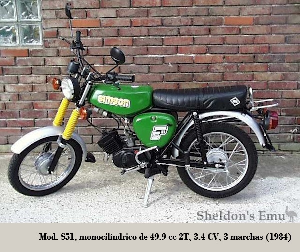 - S51N ⁵: carecía de lujos, sin intermitentes ni batería, frenos de tambor D/T (disco delantero desde 1984). 1980 -1987