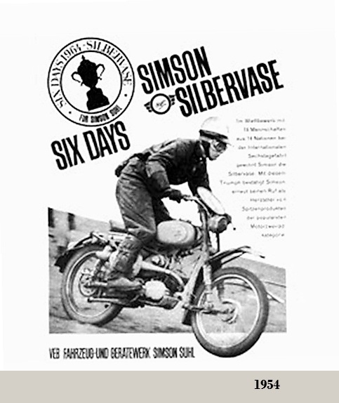 SIMSON "desapareció" en 1936, seguido de: la fundación de BSW (Suhl); de la GUSTLOFF; la AWO y finalmente "reapareció" en 1957. Estos cambios fueron motivados por diversas circunstancias; ver AWO.