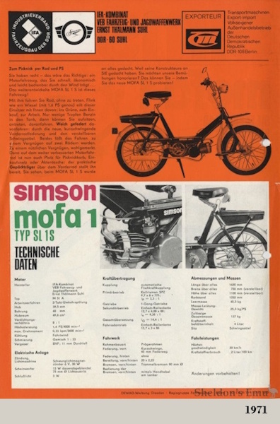 • SL1 S: como el anterior salvo el peso de 40.3 kg; producción 160.000 u. 1971-1972. Producción total de ambos ciclomotores