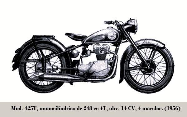 • 425 T: de 248 cc, ohv, transmisión final por eje, suspensión D/T horquilla telescópica / {amortiguadores por émbolos}; producción 124.000 unidades. 1956-196?