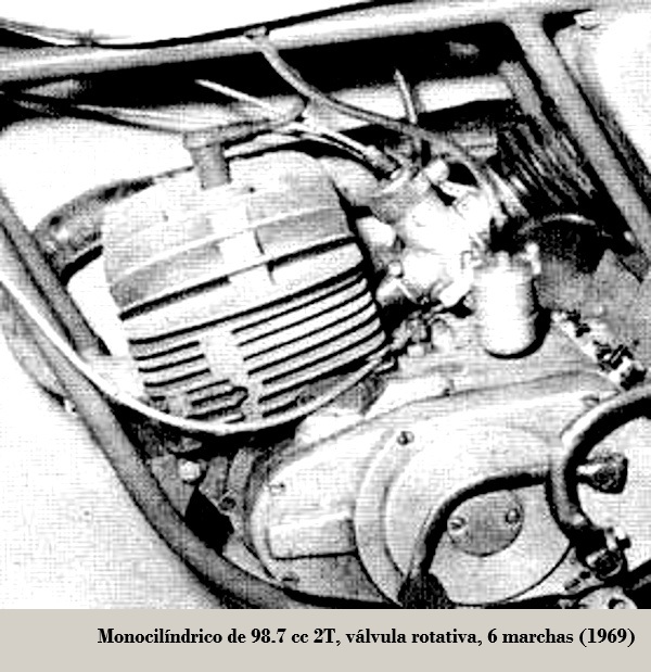 2T, 5.6 CV / 6 000 rpm, 4 marchas, relación de compresión 10.5:1, refrigerados por aire velocidad máxima entre 75 y 79 km/h, salvo las excepciones que se citan en las siguientes versiones:
