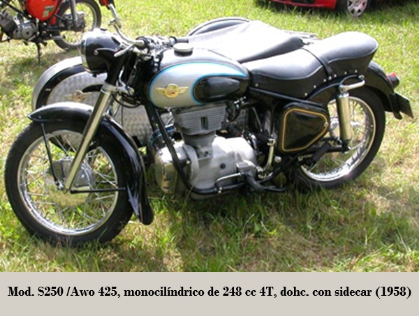 • S 250: monocilíndrico de 247 cc 4T, ohv, 12 CV, 4 marchas. 1957- 19??