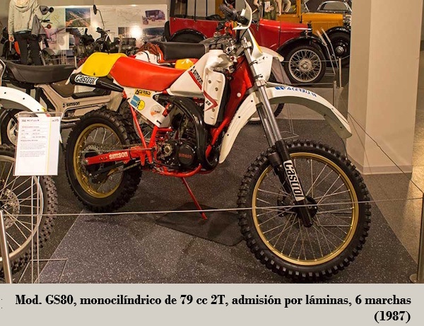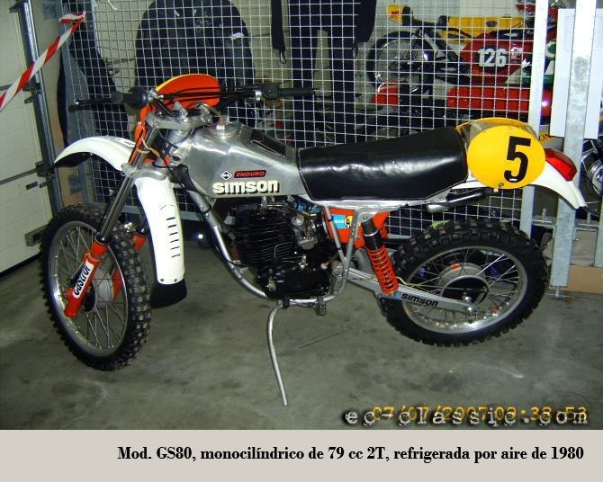 (³) las Simson S70 y Super 80 fueron motocicletas ligeras basadas en la serie S51, pero con motores de 70 cc. El nombre "Super 80" surgió de la necesidad de competir en la categoría de 80 cc precisando obtener el permiso de conducir, a pesar de que su motor tenía una cilindrada de tan solo 69,9 cc. Los modelos Super 80 se destinaron exclusivamente a la exportación a la RFA y se fabricaron por iniciativa del distribuidor de neumáticos Lange de Stuttgart. Esta serie se presentó a finales de 1983. Los motores S51 se rectificaron a 45 mm, pero se mantuvo la carrera de 44 mm. El muelle del embrague era ligeramente más rígido y la potencia era de 5.6 CV (la Super 80, de 6.8 CV). La velocidad máxima era de 75 km/h (la Super 80, de 79 km/h). De este modo, cumplían con la normativa de Alemania Occidental para "motocicletas ligeras" con una cilindrada máxima de 80 cc y una velocidad máxima de 80 km/h. En Occidente, sin embargo, tuvieron que competir con los modelos tope de gama de KREIDLER, ZÜNDAPP y HERCULES (Nürnberg) , pero en cuanto a precio, sin duda podían hacerlo: en 1984, la Super 80 costaba solo 1690 marcos alemanes frente a los 5498 marcos de la Hercules RX9. Posteriormente, todos los modelos se vendieron en la RDA como S70 y S70 Enduro.