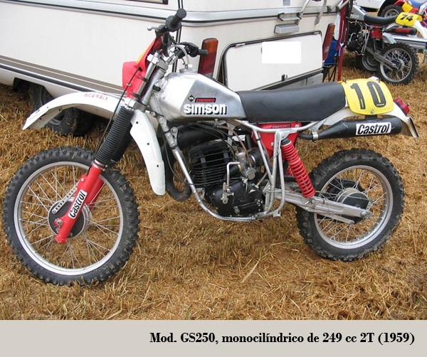 Pero a partir de 1957 ya lucieron el logotipo SIMSON. El siguiente ciclomotor fue el SR2 de 74 cc, que se convirtió en el vehículo de dos ruedas más vendido en la Alemania Oriental en los años cincuenta y principio de los sesenta. Tras este éxito llegó la primera verdadera motocicleta, la AWO 325, una monocilíndrica de 246 cc 4T, ohv con transmisión por eje, muy parecida a la F26 de BMW, y que dados los buenos resultados la utilizó en competición.