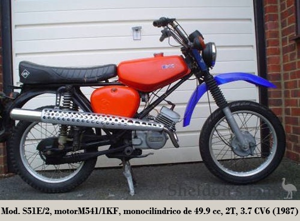 - S51E/2, apareció en 1987, con el guardabarros delantero alto y de gran tamaño típico de una enduro ²,. Incorporaba una {pata de cabra} y la bocina se ubicaba junto al faro. La E/2 también venía equipada con un único espejo retrovisor. Su producción cesó en 1989, año en que se cambió su nombre a S51/1E.