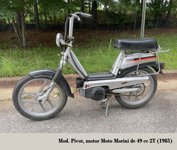 Luego ensamblaron los ciclomotores Tommy y Pivot (este último también conocido por "Tubone" ², ambos equipados con motor FRANCO MORINI de 50 cc 2T; también versión para las damas, con bastidor abierto, llantas de aleación de palas dobles D/T, frenos de tambor D/T, tanque combustible montado sobre el guardarros trasero y transmisión final mediante cadena.