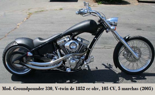• Groundpounder 330 Rigid: suspensión trasera rígida, neumáticos D/T 3.25 x 21" / 12.5 x 17" y llantas de radios y la trasera de 330 mm. 2005
