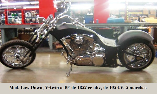 • Low Down: suspensión D/T horquilla de paralelogramos tipo leading link / softail, neumáticos D/T 3.25 x 21" / 10.5 x 18", llanta trasera 300.