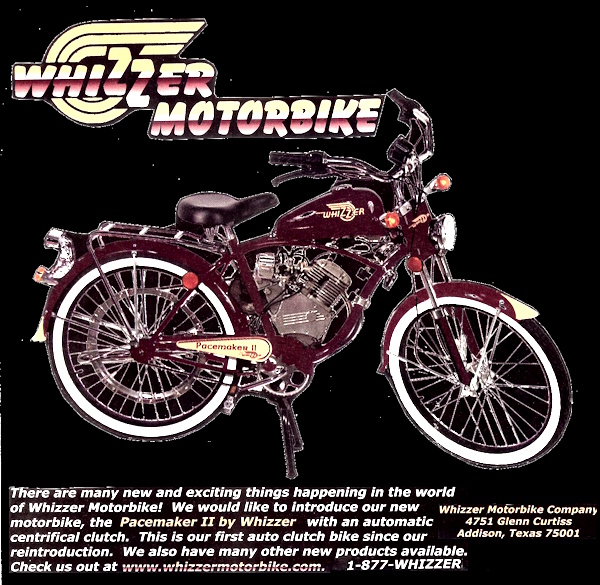 2002 Whizzer continuó produciendo el Pacemarker II en color marrón seguido de color azul obscuro y rojo manzana caramelo, con embrague centrífugo y ruedas de ø24" o ø26".