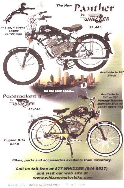 Junio. Whizzer presentó el Pacemaker, que se anunciaba como la "primera máquina completa", equipada con el motor J montado ya con el bastidor Schwinn y lista para funcionar.