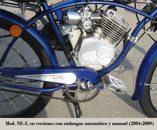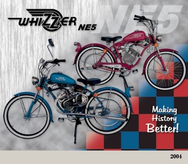 2004 Octubre, Whizzer presentó su modelo NE5 en una bicicleta con ruedas de ø26”, color zafiro azul nacarado o rojo rubí. Significativas modificaciones y mejoras se hicieron de este modelo; este fue el primer cambio importante desde que se lanzó la nueva motocicleta en 1998.