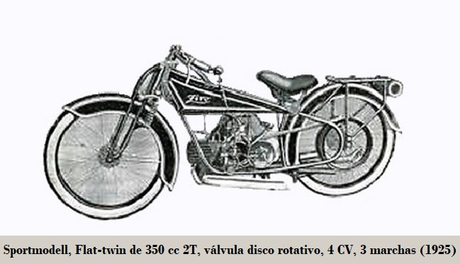 • Sportmodell 25, Flat-twin longitudinal en versiones de 1.95 / 4.43 CV, transmisión P/S cadena / correa.