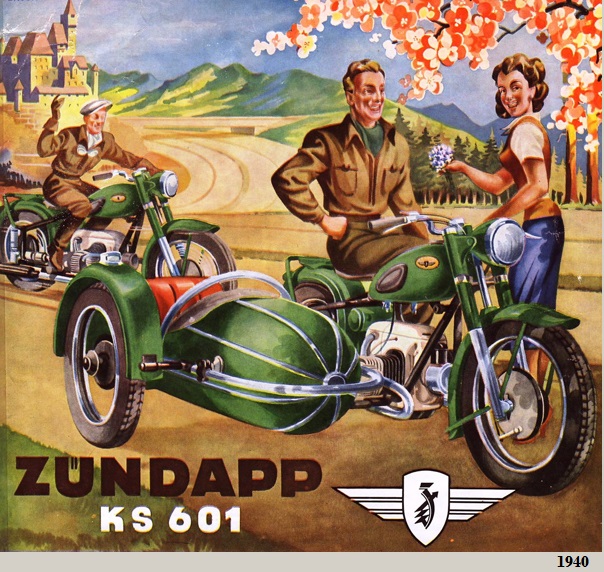 En plena II Guerra Mundial, fabricó el modelo KS 750 se trataba de una súper pesada máquina bélica para cualquier terreno con diferencial y sidecar con tracción, bastidor de acero forjado, equipada para poder trasportar a tres hombres y una ametralladora 0.30" MG-40 (famosa a causa de la cadencia de tiro, extremamente rápida y mortífera) montada en el sidecar; en su producción intervinieron los prisioneros de guerra llegados de otros países como trabajadores forzados. Fueron producidas cerca de 18.645 unidades, siendo la responsable de la producción del 70% de los sidecares alemanes utilizados durante la guerra.