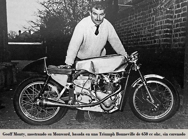 El nombre Monward deriva de sus apellidos {Mon}ty y Dudley- {Ward}. Luego, el prototipo se desarrolló aún más, como lo había hecho Monty con el motor BSA Gold Star, al reducir la capacidad de 650 cc a menos de 500 cc - 494.90 cc para ser exactos - utilizando un nuevo cigüeñal realizado por el piloto de sidecar, Owen Greenwood. Otra opción era adaptar el motor de producción Triumph contemporáneo con una capacidad estándar de 500 cc . Ambos tipos de motor fueron ajustados y construidos por Allen Dudley-Ward con su conversión de bomba de aceite Manx Norton.