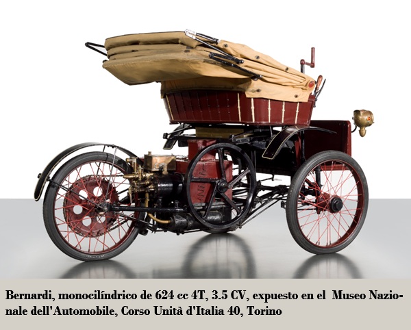 El 17 de julio de ese mismo año (1898), en la carrera "Torino-Asti-Alessandria-Torino", denominada "Concorso Internazionale di Veicoli Automobili", ganó un triciclo Bernardi conducido por Antonio Nosadini, asistente técnico de la propia firma, obteniendo un premio de 2.000 liras y el trofeo "Premio Internazionale di velocità". El recorrido cubría 190 kilómetros y fue realizado en 9 horas y 47 minutos, a un promedio de 19.42 km/h, a pesar de un pinchazo y la posterior rotura del cambio.
