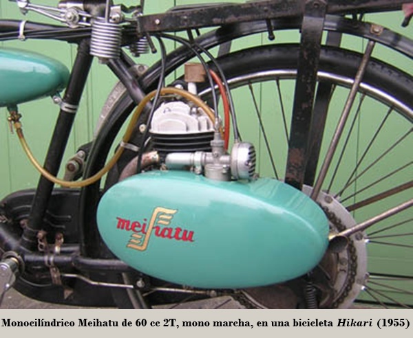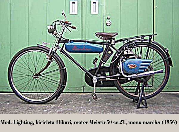 • Mod. Lightning Bma: motor monocilíndrico KB-1 de la firma MEIHATU o MEIHATSU de 60 cc 2T acoplado en el lateral izquierdo de la rueda trasera de una bicicleta Hikari, con transmisión directa mediante cadena, probablemente de 0.5 CV; luego montaron la versión de 80 cc...